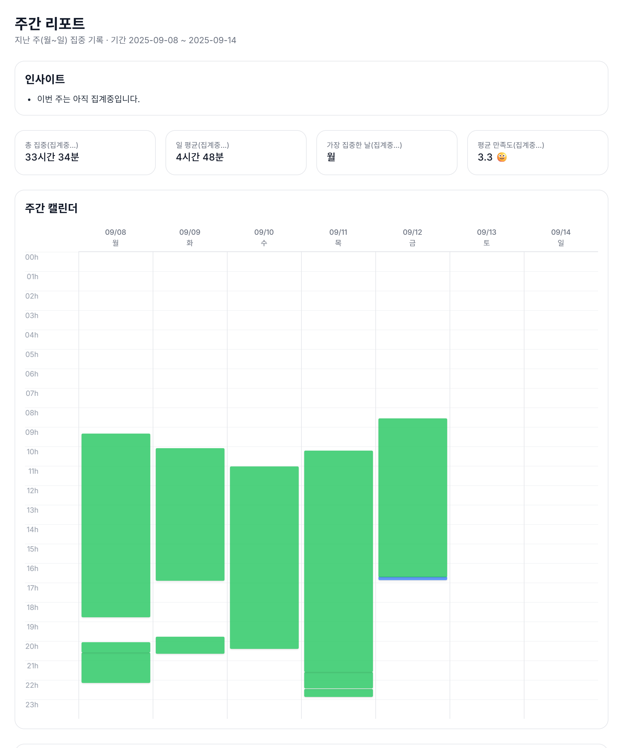 ์ด๋ฒ ์ฃผ๋ ๊ณต๋ถํ๋ฉด์ ํ๋ฃจ์ ์ผ๋ง๋ ๊ณต๋ถํ๋์ง ํธ๋ํน์ ํ๊ณ ์๋ค