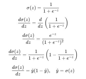 $$ \frac{\partial \hat{y}}{\partial z} = \hat{y}(1 - \hat{y}) $$