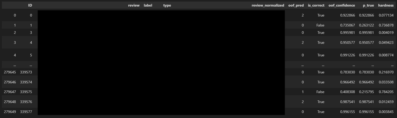 ๋จผ์ ๊ต์ฐจ๊ฒ์ฆ์ ๋๋ฆฌ๋ฉด์ ๊ฐ ํด๋๋น ๊ฒ์ฆ์ ์ ๋ํด ์์ธกํ ๋ผ๋ฒจ๊ณผ ํ๋ฅ ๊ฐ์ ์ ์ฅํ๋ฉด ๋ฒ ์ด์ค๋ผ์ธ์ด ์๋ณธ ์ ์ฒด ๋ฐ์ดํฐ์ ์ ๋ํด ๋ฌธ์ฅ๋ง๋ค ์ด๋ค ๋ต์ ์ผ๋ง์ ํ๋ฅ ๋ก ์์ธกํ๋์ง๋ฅผ ์ ์ ์๊ฒ ๋๋ค