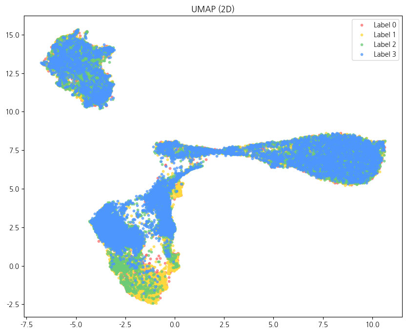 - ๋ฐ์ดํฐ ๋ฌธ์ : ๋ผ๋ฒจ์ด '์ค๊ตฌ๋๋ฐฉ'์ด๋ผ๋ ๋ง์ฒ๋ผ, ๋ฐ์ดํฐ ์์ฒด์ ๋ผ๋ฒจ๋ง์ด ๋ชจํธํ์ฌ ์๋ฒ ๋ฉ ๊ณต๊ฐ์์ ๋๋ ทํ๊ฒ ๋ถ๋ฆฌ๋์ง ์๋์ง.