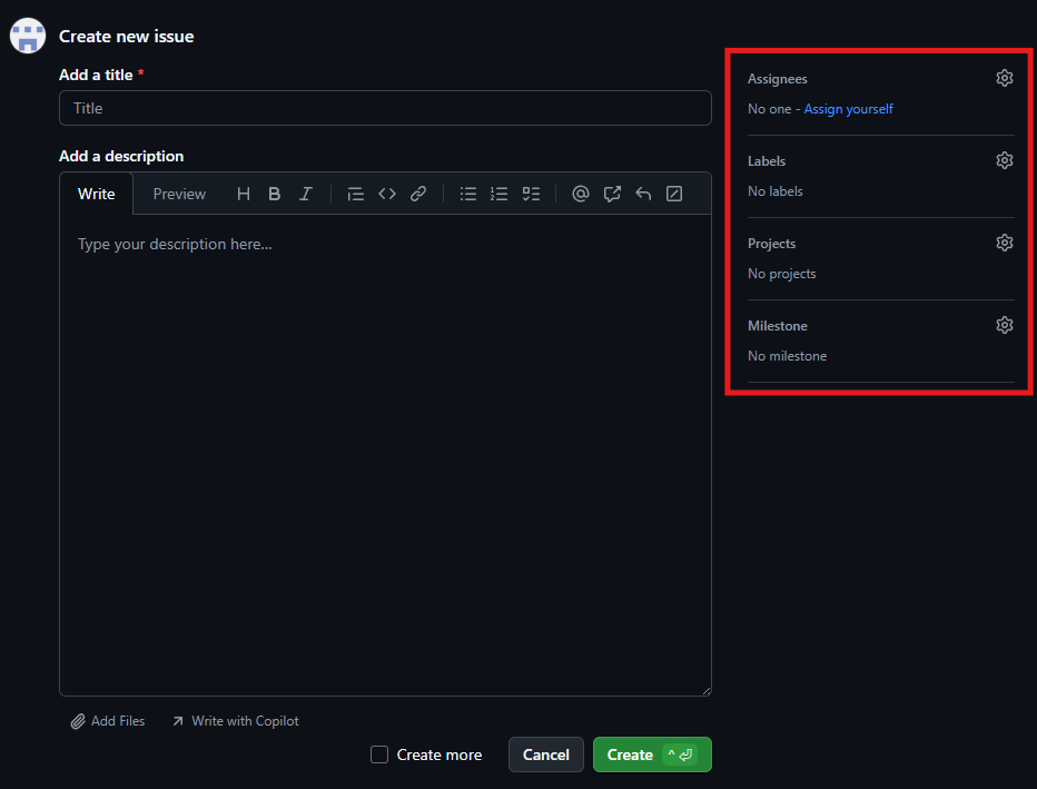 - Issue๋ ๊นํ ๋ ํฌ์ Issues ๋์์ New issue๋ก ์์ฑ ๊ฐ๋ฅ