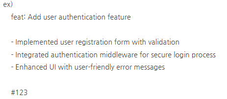- Issue, Commit ์๋ฐฉํฅ์ผ๋ก ์ฐธ๊ณ ํ๊ธฐ์ ์์ History ๊ด๋ฆฌ ๋ชฉ์ ์ผ๋ก ์ฌ์ฉ