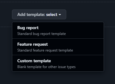 - Issue์ ์ข ๋ฅ๋ก๋ ๋ํ์ ์ผ๋ก Feature Request, Bug Report ๋ฑ์ด ์กด์ฌ