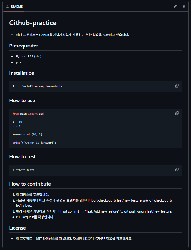 Github Repository์ ์ผ๊ตด์ธ Readme๋ฅผ ์์ฑํด๋ณด๋ ์ค์ต์ ์งํํฉ๋๋ค.