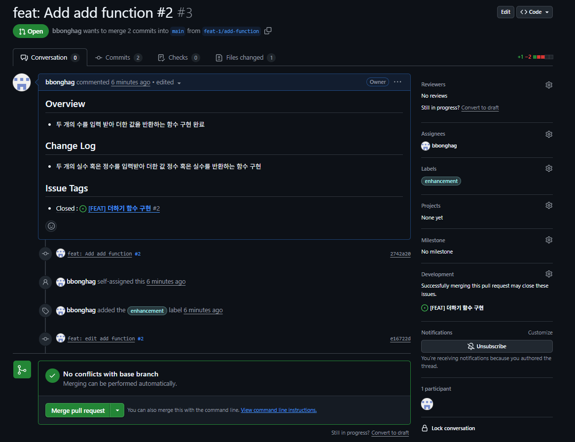3. Github Pull Request๋ฅผ ํตํด ์ฝ๋ ๋ฆฌ๋ทฐ ๋ฐ๊ธฐ | Notion