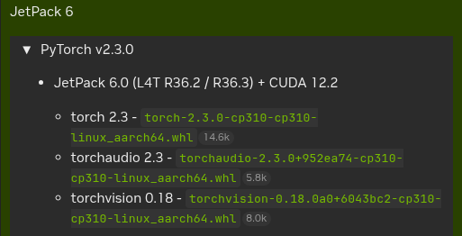 JetPack 6.0, CUDA 12.2μ ν΄λΉνλ torchμ torchvisionμ whlλ‘ μ€μΉν¨
